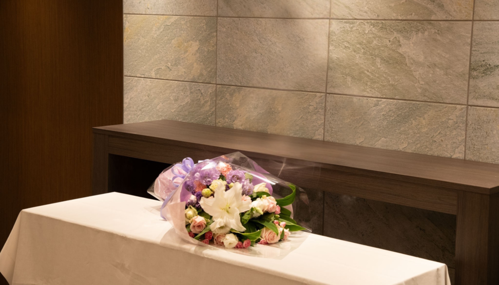 | 生花 | ・生花祭壇 ・生花(¥33,000/基) ・出棺束(¥11,000) ・プチフラワーブーケ・フラワーボックス(¥13,200) |